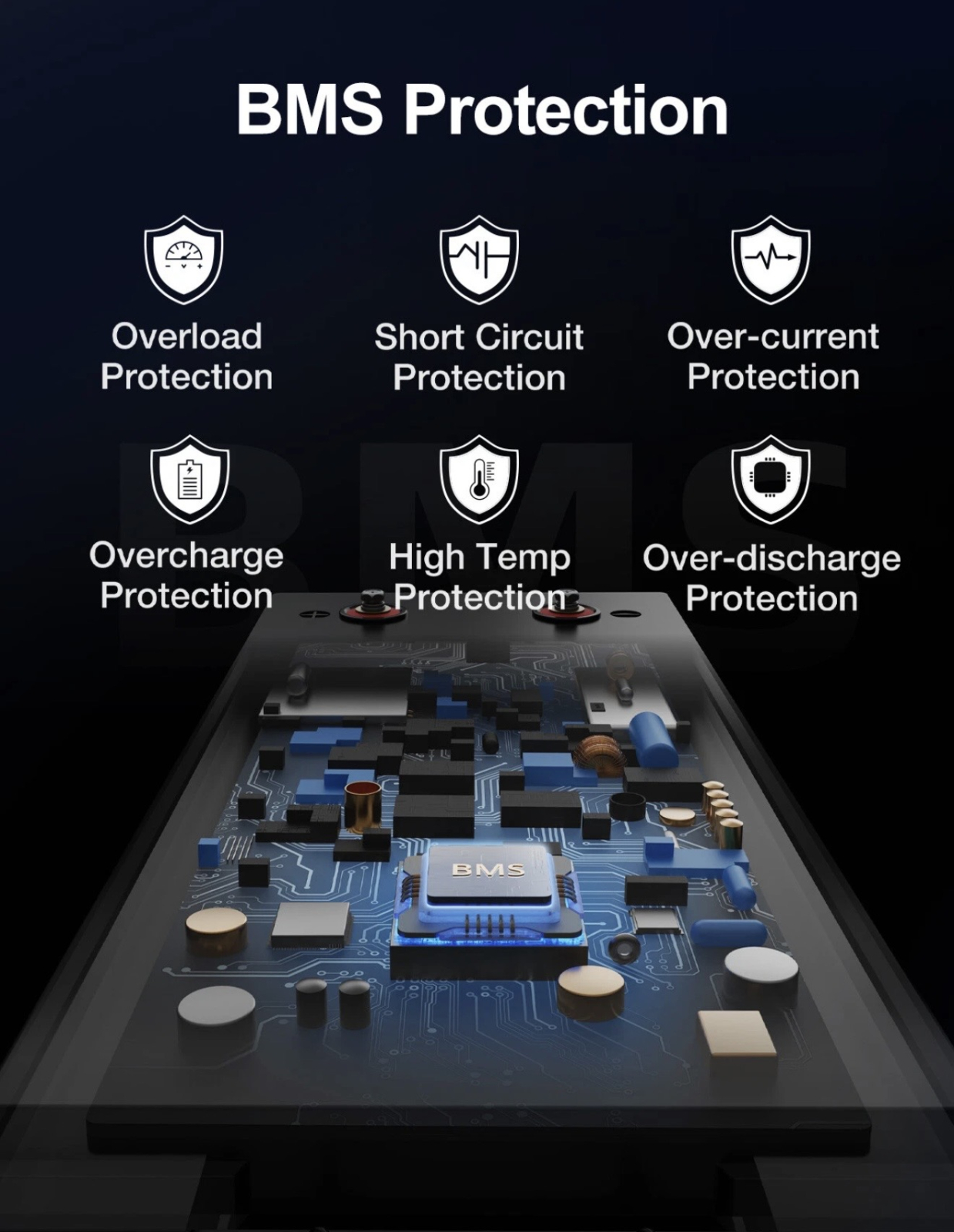 [Siguranță BMS avansată de 200 A] – Sistemul încorporat de gestionare a bateriei oferă protecție completă împotriva supraîncărcării, descărcării excesive, supracurentului, supraîncălzirii și scurtcircuitului. Garantează performanță sigură și stabilă. [Extensibilă și durată lungă de viață] – Conexiune flexibilă în serie/paralel până la 4S4P pentru maximum 57kWh. Fabricată cu celule LiFePO4 de gradul A ecologice, suportând până la 15.000 de cicluri la 100% DOD și peste 15 ani de funcționare fiabilă.